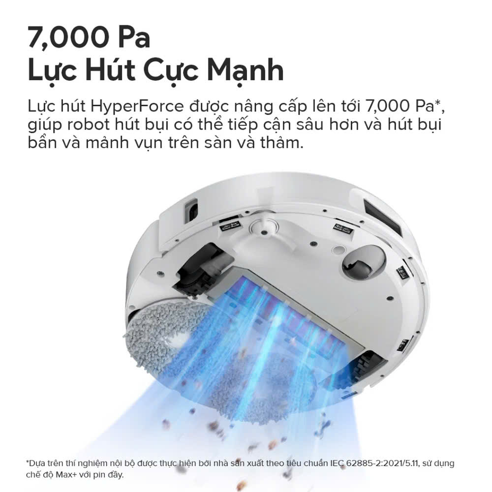 Với sức mạnh hút vô cùng mạnh mẽ lên đến 7.000 Pa, công nghệ HyperForce của Roborock Q Revo Pro không chỉ đơn thuần là một cải tiến vượt bậc, mà còn là một bước đột phá đáng chú ý trong việc loại bỏ bụi và vết bẩn ẩn mình tại mọi góc khuất trong căn nhà của bạn.