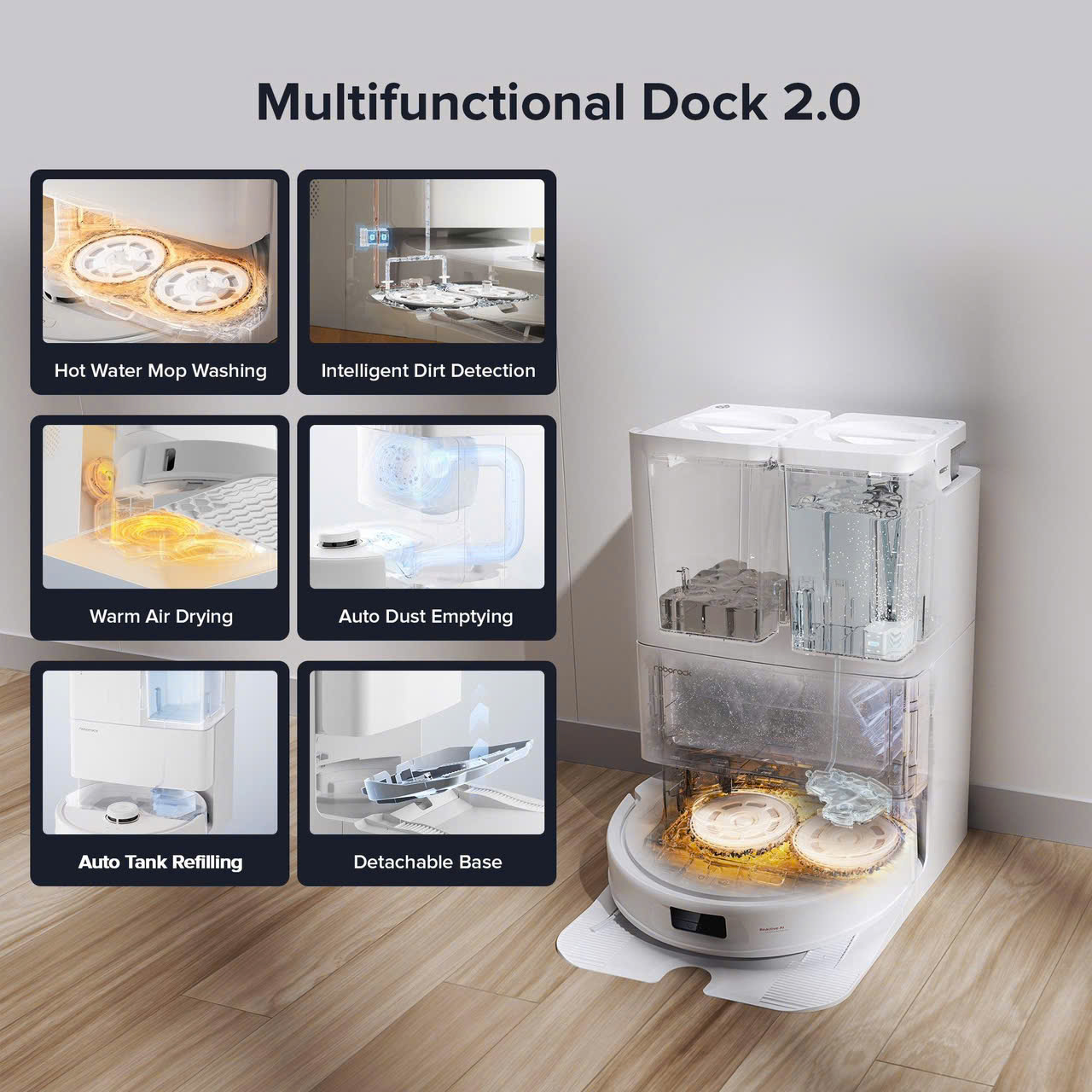Trạm sạc của Roborock Q Revo MaxV không chỉ đơn thuần là nơi cung cấp năng lượng cho robot mà còn là một trung tâm đa chức năng với những tính năng độc đáo: