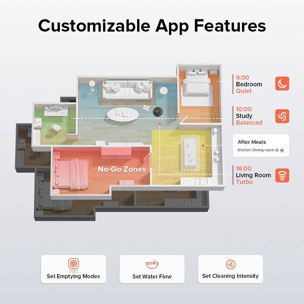Roborock Q5 Pro không chỉ là một thiết bị hút bụi thông minh mà còn mang đến trải nghiệm dọn dẹp cá nhân hóa đầy thú vị qua ứng dụng Roborock. Bạn có thể dễ dàng tùy chỉnh thời gian làm sạch, chế độ vệ sinh, và chỉ định các phòng cụ thể cần được làm sạch, mọi việc sẽ diễn ra tự động theo yêu cầu của bạn.